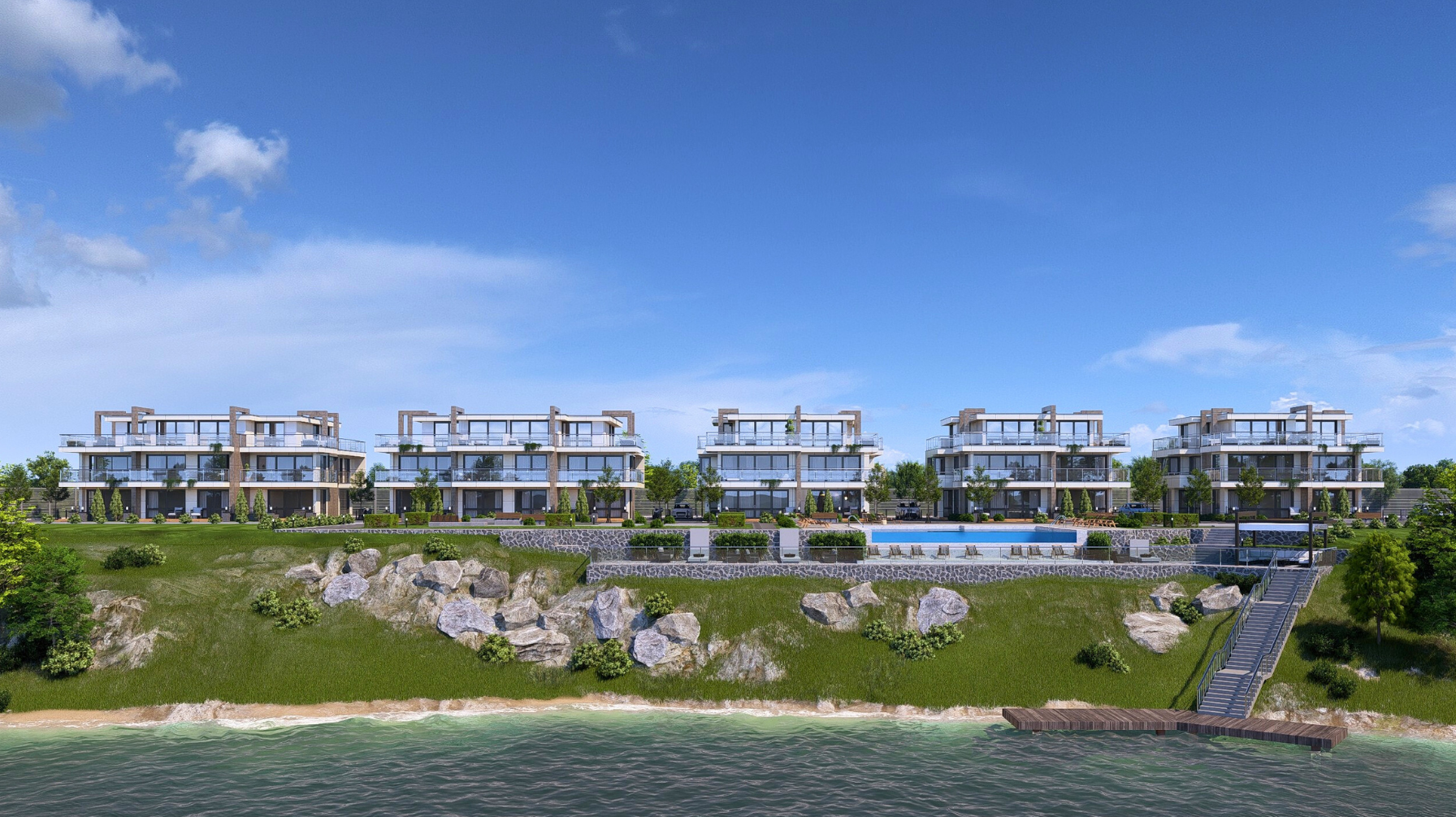 We have 36 apartments for sale (from 47 sq. m to 127 sq. m). The complex consists of 5 buildings.